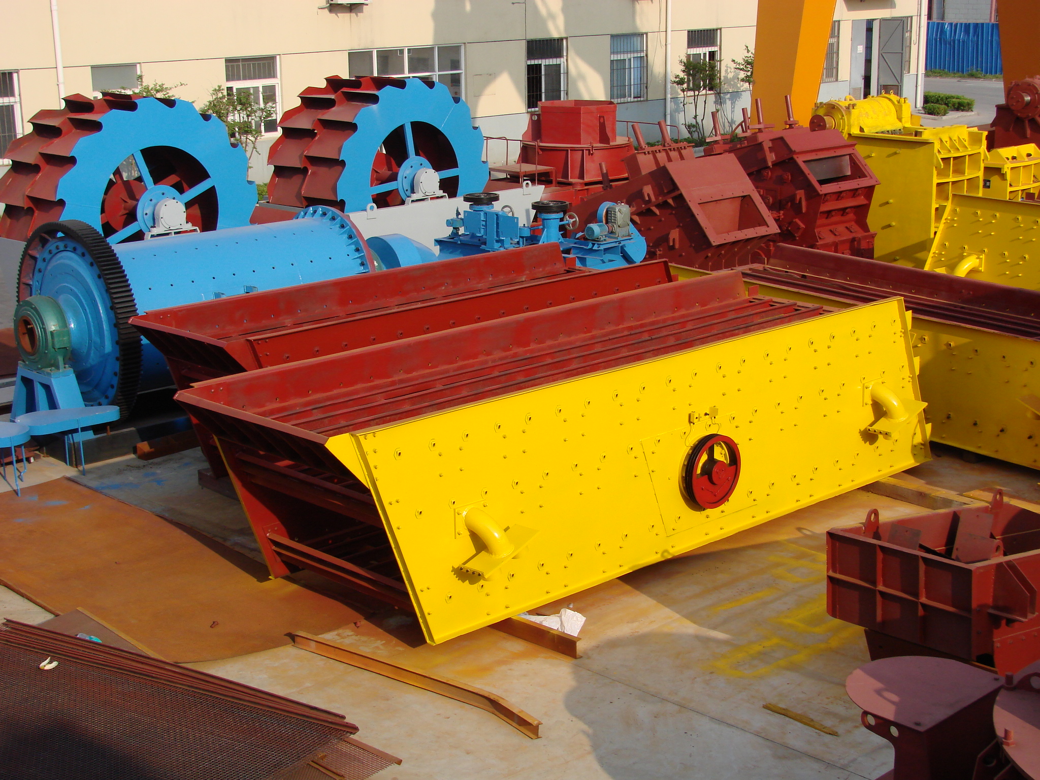 (3)圓筒篩 工作部分為圓筒形(xíng),整個篩(shāi)子繞筒體(tǐ)軸線回轉,軸線在一般情況(kuàng)下裝成不大的傾角。物料從圓筒的(de)一端給入,細級別物料從筒形工作表麵的篩孔(kǒng)通過,粗粒物料從圓筒的另一端排出。