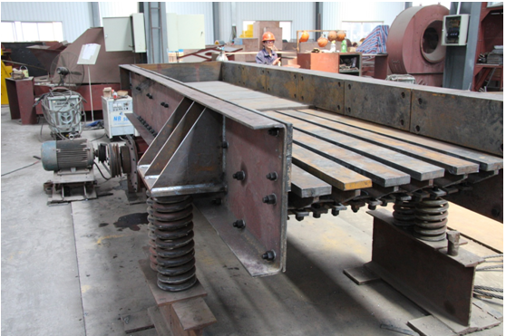 振動給料(liào)機是一種(zhǒng)常用的給料設備,在(zài)生產中可以將塊狀或顆粒(lì)狀的(de)物料均勻(yún)、連(lián)續的送至受料設備,是整條生產(chǎn)線(xiàn)的一道工序。其後經常跟顎式(shì)破碎機破碎,振動給(gěi)料(liào)機的工作效率不僅對顎破的產能有重要影響,對整條生產線的生(shēng)產(chǎn)效率也有影響。